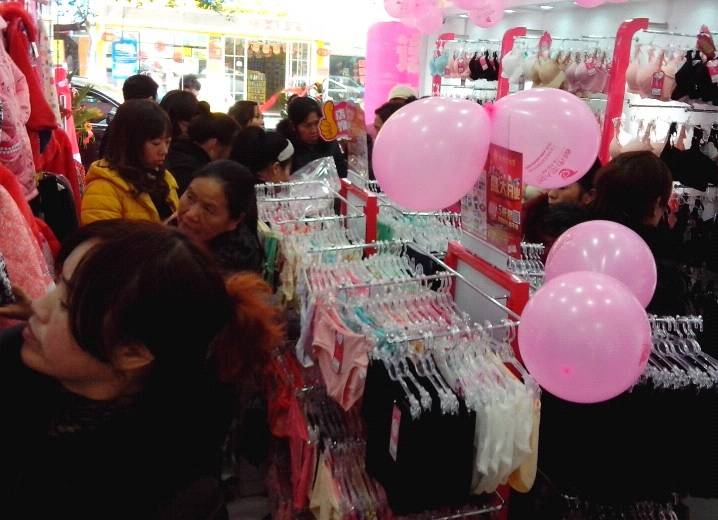 我们是下午到达店面的,老板是一个二十几岁的小伙子,从来没有做过生意当过老板,但是心态很好,也很好学,不懂就会来问,我们到时店里的货都已经挂好了,因为是年前铺的货没有来及开业,就自己先试营业,也为难老板,虽然货都上柜了,但是全部都挂错了,我们简单的了解了一下周围的情况就开始分工行动了,这几天一直是老板的姐姐在店里帮忙,预计后面还会找一个员工来看店,就这样忙陆着,直到晚上8点钟左右一个整洁,清爽而又明亮的内衣店就展现在了我们的面前,我们又用气球装饰了一下店面让他看起来格外的温馨,准备好一切后我们就准备回去休息了,准备迎接明天美好日子的到来。