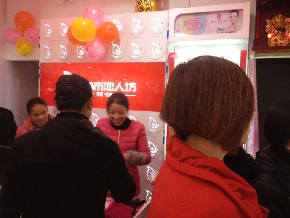在开业前一天,我们大家一起努到凌晨,在这次货品陈列中也加入了一些创新,主打情趣风情,着想整个店面情意浓浓。第二天的礼品堆头 大字特写,音乐响呼,在一片忙活中我们的店铺迎来了欢天喜地的热闹场面,送花篮,招财猫,吉祥寓意。虽然下了点小雨,但是,同时祝我们的加盟商生意越来越好,财源滚滚。