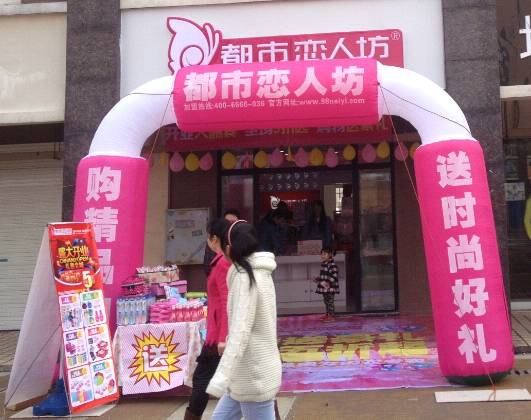 3月9日,在我们的工作人员与加盟商共同协作努力下,加上彩礼的喝彩声,音乐的伴奏,礼品堆头,我们都市恋人坊又一家新的店铺开张了。