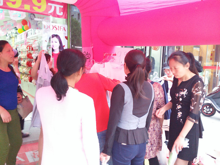 余总是我们公司的老加盟商了,12年通过店面招商与都市恋人坊结缘的。在扬州连续开了三家店。这次五一活动,余总和陈姐也是响应公司的政策,用特价带动正价的活动,陈姐在做活动前补货充足,客户睡衣和内衣都两件三件的拿。老板娘、店员、督导间的默契配合,以及霸气的外场的,超吸引人的陈列,吸引了大批量的人,一天人流量不断,形成了人挤人的火爆场面!
