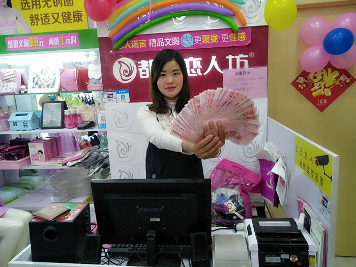 陈先生老婆徐姐一直想拥有自己的一家内衣店,机缘巧合下通过地面招商与都市恋人坊结缘的。今天我们的活动主题是“新款上市,爆款文胸买一送一”。先来看看我们霸气的外场和店内产品吧。