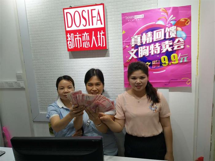 万美女是一名90后,貌美如花,年轻有为,家族有二十多年的经商的经验,有大型内衣批发部,广州亲闺蜜品牌内衣店,也是我们老加盟商,从2013年跟随公司的脚步发展,每次公司做活动都积极配合参加,非常认同公司的五维服务,接下来看看火爆的活动现场,由于当天是520,督导和店员同心协力打造的温馨的外场,丰富的货品,饱满和美观的陈列,受到当地学生美眉的追捧,更吸引不少男士来都市恋人坊买内衣送女朋友做为首选,天气虽然高温炎热,也挡不住热情的小伙伴喜爱咱们家物美价廉的商品,在外场督导激情四射的喊麦声,和导购的销售技巧的强强联手,当天的大单连连来袭,顾客都是空手而来,满载而归,最后看看我们一天的辛勤劳动业绩最终达到13806元,看看老板脸上洋溢着开心的笑容,我们的万美女还在准备找位置开2店,同时也祝万美女家庭幸福,生意红红火火,早日开多店。。。
