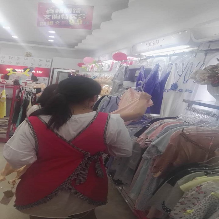 看看我们的美女店员,那销售热情和销售能力都是杠杠的,一单单都是两三百,诺言文胸两个两个的走起。