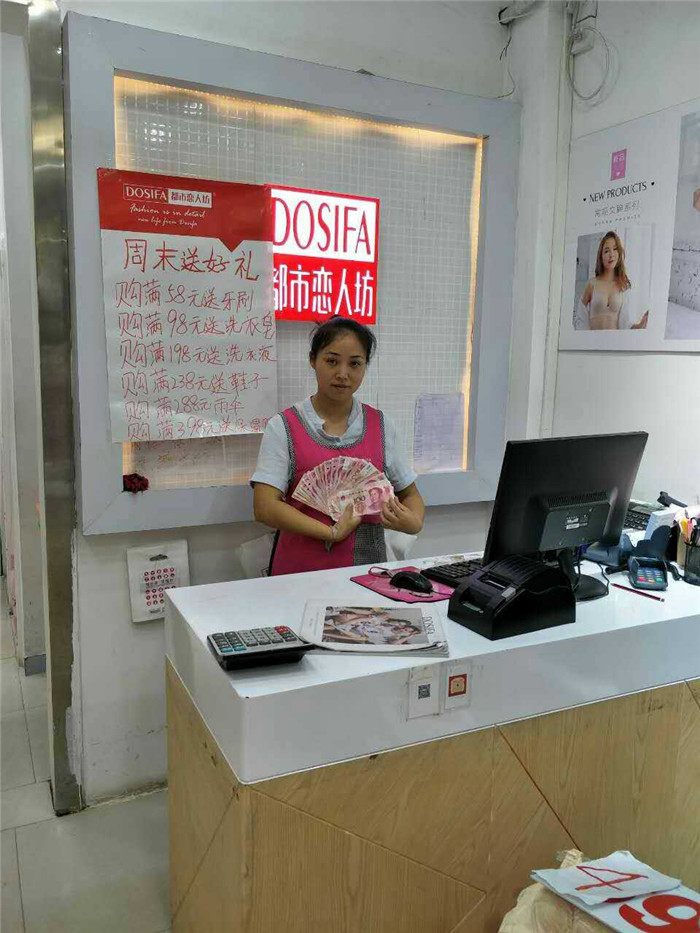 吴总是1989年来到海南打拼,到如今已经27年,他说海南是他第二个老家,最初在海南做楼房门面装修师傅,通过自己的努力有了自己的积蓄,想要发展门面店铺经营,但自己没有经验,在网上翻阅了一翻吴总就看中公司的经营模式,虽然当时公司成立没多久但公司服务有督导帮他打理店面,培训新员工,管理货品,还定期做促销活动,刚好弥补了自己没经验,现在算起来是元老级加盟商了,一直以来对公司绝对是百分百的信任,新品更新快,活动前一天我们店铺布置的非常有气氛,活动当天我们确定了目标后,就开始在外面喊麦,渐渐附近的人都来看热闹,当天还下着雨也挡不住我们的激情,活动内容也吸引,都纷纷进店瞧一瞧。下午人慢慢多了起来,看着业绩不停的往上跳,更加有激情,最后达到了7002元。