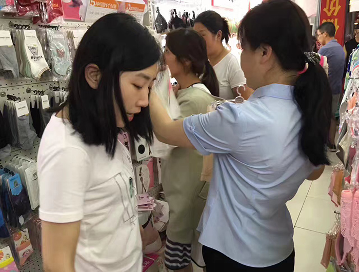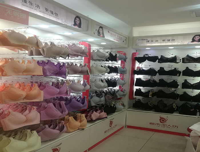 朱总的店在商场里面,从商场开业就已经入驻,是我们的老加盟商,这家商场里面的4家内衣店紧接相连,竞争也比较激烈,但是咱们的品牌价格实惠,质量又好,朱总的老婆——兰姐是管理能手,打理店面也是杠杠的,货品永远是充裕的