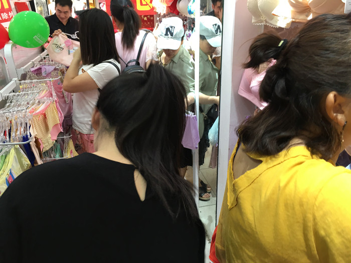 姜姐之前一直从事内衣散货生意,一直想做品牌的姜姐在14年通过地面招商加入到都市恋人坊大家庭的。今天我们的活动主题是“新品上市,全场低至3.5折”。大家先看看我们的店面产品和外场吧。
