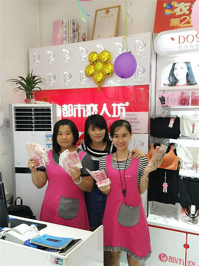说到清远可能很多人不是很熟悉,但是清远鸡可是闻名四海呢!我们的都市恋人坊就坐落于“鱼米之乡”、“三鸟之乡”的清远石角镇上,在2015年刘总加盟了我们都市恋人坊的,之前是开女装店的,然而市场渐渐的趋于品牌专卖化,觉得我们公司的快时尚货品和五维服务都非常好,就立马加盟我们品牌了。紧跟着公司快时尚的步伐和优质的服务,业绩一直都保持得非常不错,在不到一年的时间内又开了2店,麻雀虽小,五脏俱全!众所周知,7月是多雨的季节,有些人会说,下雨天生意不好,下雨天了没人逛街,是的没错,但是下雨天我们更需要多配备几件内衣内裤!雨一直下,我们大单照样火爆,我们无时不刻都在手机微信朋友圈一一通知老客户,都是直接微信红包抢购,嗨爆全场!