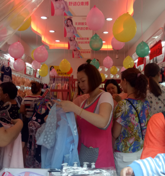 肖美女一直是我们的老客户了,她还经营了女装,这个恋人店铺的位置就在万盛的步行街,周末我们把有钢圈的文胸用来做清仓的活动,重庆的夏天就是火辣辣的,出门就像烧烤,真的一点也不夸张,可是我们都市恋人坊依然人潮涌动,随着我们的音乐声音响起,人们比火辣的夏季还要热情似火,店铺的人流络绎不绝,下面就让我们来看看肖美女店铺的火爆场面!!!!