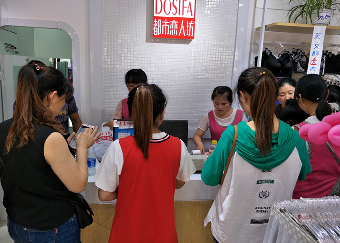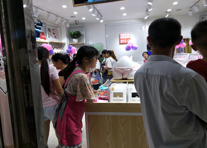 许姐是2012年通过招商经理加入我们都市恋人坊,是公司老加盟商也是优秀加盟商,之前都是做的散货内衣店,既辛苦又不赚钱,半夜很早就要去市场拿货,早上回来再拿出来卖。加入都市恋人坊,刚开始做的时候什么都不懂,到现在经营管理样样在行,策划活动也是棒棒的!短短几年时间从最开始的1家小店发展到现在2家内衣店、5家恋惠店,发展之快,取决于对公司的信任,对公司后期团队的认可。今天我们去的是2店内衣店,虽然最近城管管的严不让摆外场,但是我们依然把广告做的醒目标识贴在门口,来看看前方传来的图片。