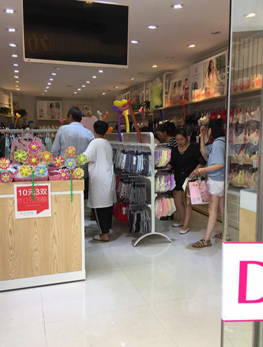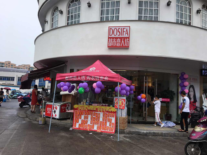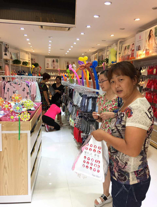 何老板是我们几届的加盟商冠军了,旗下开有4家都是恋人坊内衣店。今天活动的其中一家是何老板的3店,3店在前2个月刚刚换掉一个全新的装修,如今店面的非常的高端大气。今天早早的我们就开始来布置外场,外场摆场摆有丰厚的礼品非常的吸引眼球,在加上我们点缀的气球瞬间有了活动的气氛。劲爆的音乐加上时尚多样的货品吸引了不少客户前来购买。快来一起看看吧!