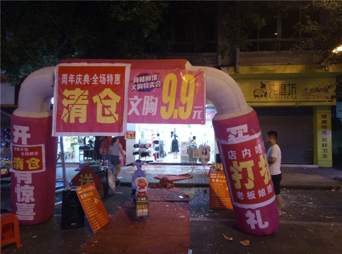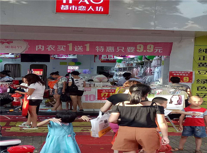 巍姐是通过朋友了解到了我们的品牌,从去年7月份加盟我们品牌的,到现在刚刚好整整一年的时间,活动当天督导提给巍姐商量了活动方案,提前做好了准备,活动当天,督导中午到店铺,但是巍姐提前就把外场和内场布置好了,等督导到店,音乐响起,刚刚开始喊麦,就吸引了一波又一波的顾客,紧接着就是一直爆场,源源不断的顾客进店挑选产品,火爆的场面一直持续到晚上11点,一直就没有休息过,最终我们的活动业绩以7179元圆满结束,接下来看看我们活动火爆的现场的图片吧。