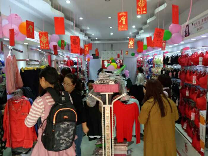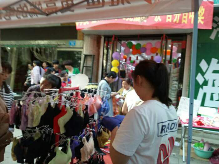 顾客你一件我一件兴奋的在选购着自己心爱的服装、、、、、、