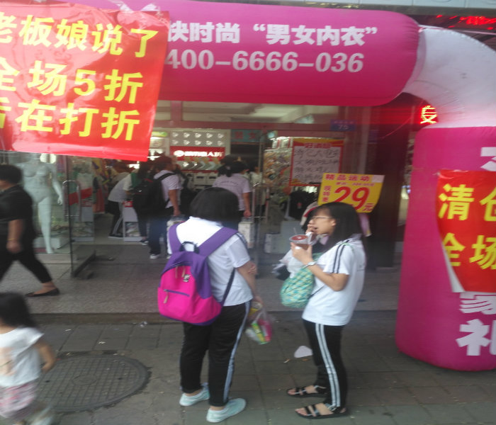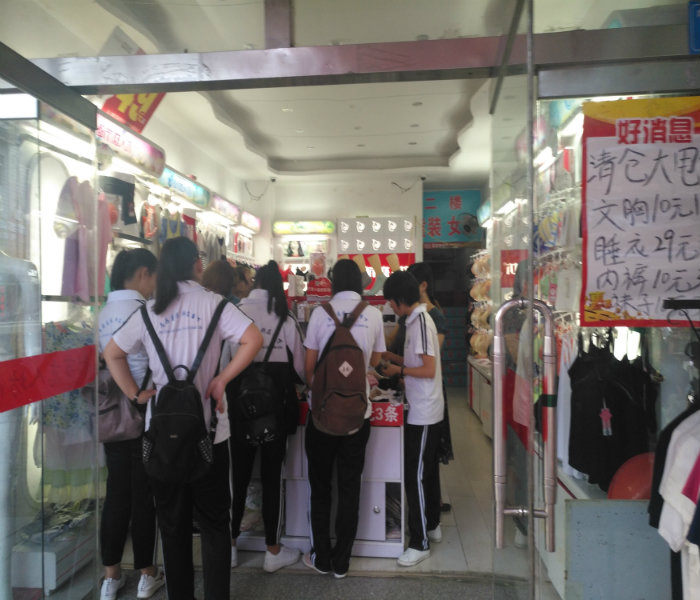 一大群美女学生把我们的店门都堵住了,人人都有优惠人人都有实惠