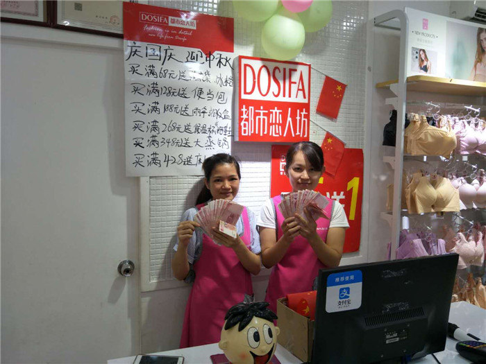 “来来来,走过路过的新老顾客朋友们!进店看一下喽,全场优惠特惠......”随着一波一波的叫卖声,我们赵总店铺的活动开始了。说起客户赵总,也是一名非常开明,明智的优质客户了。原来经营都市丽人,和熙美诚品,在机缘巧合下,接触到了我们公司旗下品牌《都市恋人坊》和《恋惠优品》。在详细了解到公司各种优惠政策后,马上签约,马上开店,马上挣钱!马到成功!一气呵成。这或许就是最初的信任吧。从最开始的内衣到我们的《恋惠优品》已经有4家店铺了。