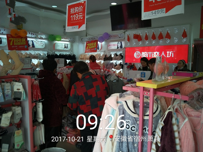 宿州李姐之前是做运动品牌的, 通过地面招商加入到都市恋人坊大家庭的,去年5月份开业的,开业以来生意一直做得红红火火。周六我们督导再次来到这里做活动,活动主题是“特惠秋衣秋裤29元/套,特惠保暖衣59元/套”。
