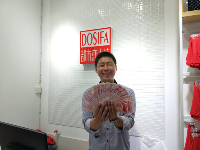 一整天旁边的珍妮芬都在干着急啊,而我们的辛苦还是得到了回报的,晚上看了下业绩,高达11581元,张哥拿着钱,心里美滋滋的。