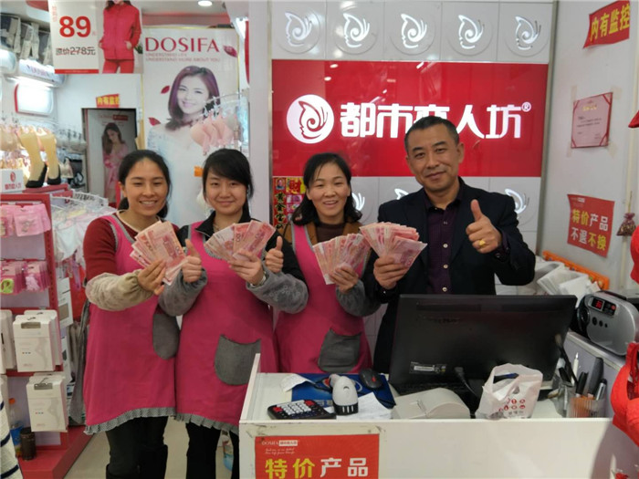 贺总是我们的老牌加盟商了,生意也是越做越好,双11这天虽然下起了小雨,人流不是很大,但是我们店里员工连带抓的好,当天店里员工大单高达千元,一个好的员工机制,一个质高价低的货品,集优势于一身,虽然隔壁还有个内衣店100%感觉,但是我们最终业绩依然高达7489元