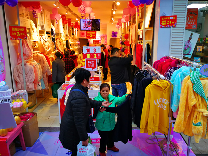 宜宾长宁县安宁路张洁店开业活动业绩高达7797元,小洁美女年轻漂亮,之前一直在经营家电,后来经她好朋友的介绍了解到我们都市恋人坊,经过实地考察后对我们公司的五维服务赞不决口,对公司的货品也表示十分满意,因此加盟了我们都市恋人坊,不得不说小洁美女眼光独到、精明能干,活动当天我们的保暖夹棉都卖疯了,好吧,让我们一起来看下开业活动当天的火爆场面吧!