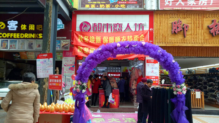 王总是都市恋人坊的老加盟商了!王总一店在11月27日举行了,砸金蛋送豪礼秋冬保暖促销会,活动现场督导负责外场激情的喊麦吸引顾客和礼品的派送。导购姐姐负责店内保暖的促销!对顾客的了解,推荐适当的产品,进店顾客都能买到心满意足的产品!当天活动业绩高达8157元!让我们一起看看我们最美的导购活动现场吧!!