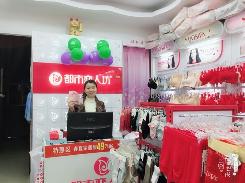新开毛姐加盟都市恋人坊已经两年多了,当时在本地已经有了一家都市恋人坊,毛姐就在附近的乡镇上找门面,当时已经到了年底,新开镇很少有转让的店铺,后来经过不懈的努力,终于找到了合适的店面。由于毛姐人缘比较好,后期的老顾客维护的非常好,再加上很好的备货意识,基本上新开镇买内衣都会到都市恋人坊来。