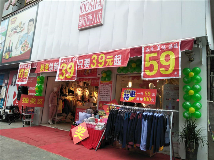 老板是经过朋友介绍加盟我们店的,朋友刘琴娄底1店,2店业绩一直还可以。老板嗅到商机,果断加盟我们品牌。签合同到开业时间只有短短一个月时间就开业了。在这段时间里老板店里也一直保持着高业绩。老板对我们公司的装修,货品,还有给力的后期五维服务一直很满意,对公司信心也是满满的。活动当天是赶集的,上午人流不断,人挤人,都被我们本次活动外场氛围,及优惠活动给吸引住了。走过路过的都忍不住停下脚步往里面看看。夹棉,保暖,卖个不停。下面我们一起看下火爆的活动现场吧。