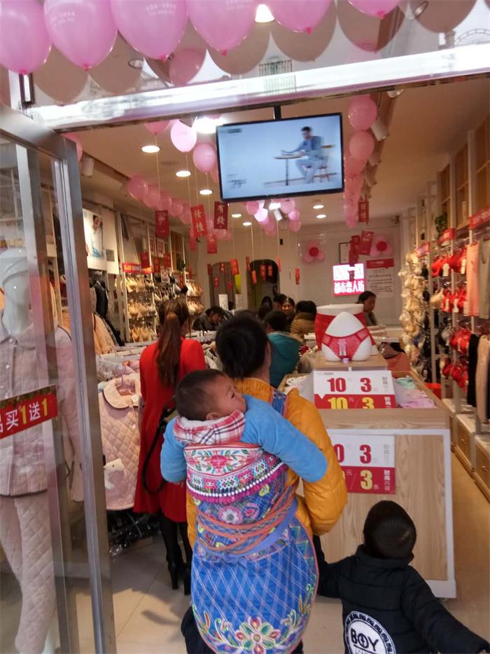 彭总是我们公司的老加盟商了,在萍乡莲花县连续开了2家店。这次秋冬活动中,也是响应公司的政策,彭总在做活动前补货充足,客户保暖和秋衣都两件三件的拿。老板娘、店员、督导间的默契配合,以及霸气的外场的,超吸引人的陈列,吸引了大批量的人,一天人流量不断,形成了人挤人的火爆场面。下面来看看我们当天活动的火爆场面和现场陈列。