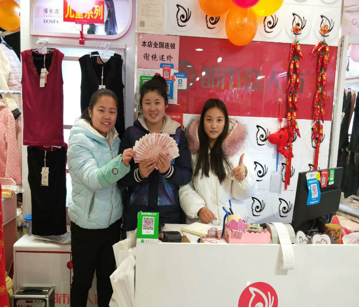 赵老板是一个精明能干又漂亮的80后美女,之前有四年的内衣管理和销售经验,对内衣行业非常看好。2015年,经过再三考察在众多内衣品牌中毅然选择都市恋人坊,自己做老板。一直秉承着要做就做最好的原则,跟随公司的步伐,把店面打理的井井有条。活动当天有很多老顾客来光临,都很认可我们都市恋人坊这个品牌,觉得我们这个品牌形象好,质量好,比其他同等品牌的产品还便宜。由于有着对市场准确的把控,在备货上一点不含糊,早早备好冬款,有着充足的货品,每天的营业额节节攀升。来看看我们当天活动的火爆场面吧。