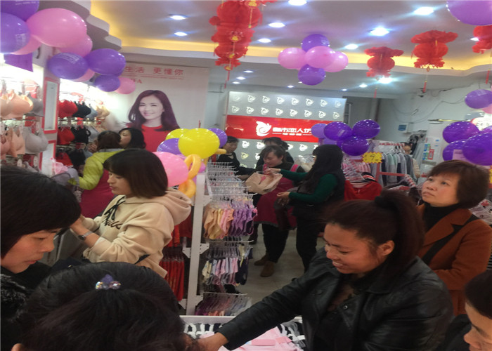 彭玉湘女士是老加盟店了,位于当地的一条老式步行街,活动的成功与业绩让彭女士对都市恋人坊更加有信心了,彭女士是一个开朗,做事情认真的加盟商,做都市恋人坊以来一直都是努力于都市恋人坊,本次活动天气不错,客户是下个月准备换装修,所以做清仓活动,内衣断码的49元处理,新款内衣9折,法兰绒睡衣一口价100-120,活动两天一共是27279.87元,接下来看一下活动的热闹场面