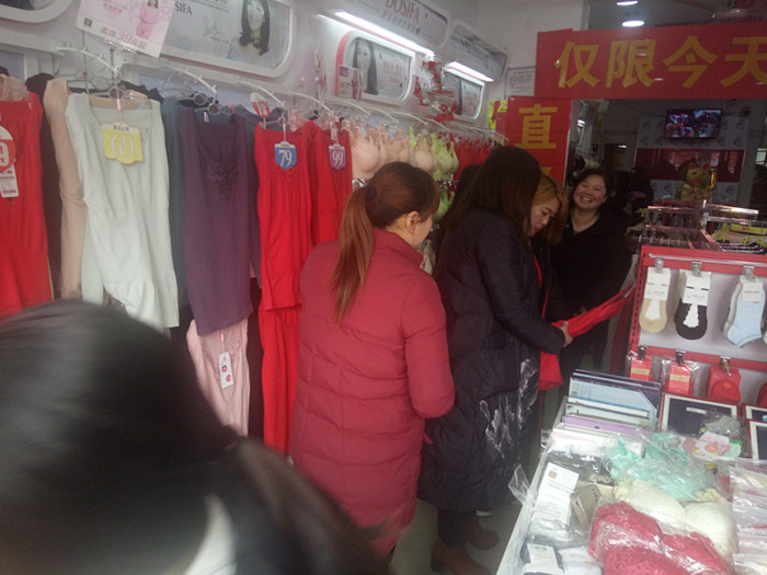 热烈祝贺金湖王姐38女神节活动业绩高达12047元!金湖王姐一直经营两家都市恋人坊店,生意那是相当的火爆,就在38女神节这个喜气洋洋的日子里,我们督导下店给她家搞了一场大型文胸特卖会。热闹的场面,高高的业绩再次证明了我们都市恋人坊在金湖是多么的受欢迎,下面来看看我们火爆的场面吧。