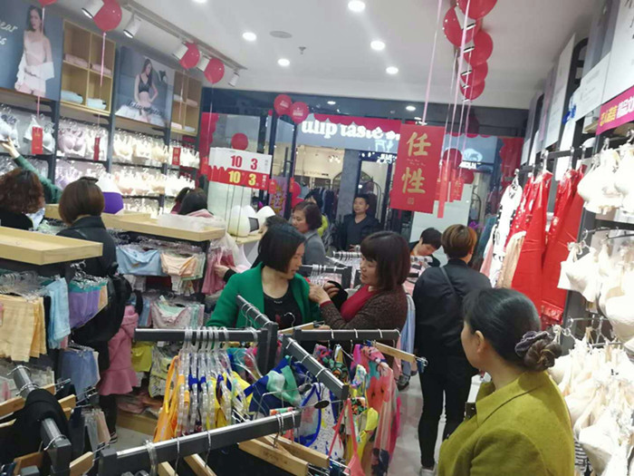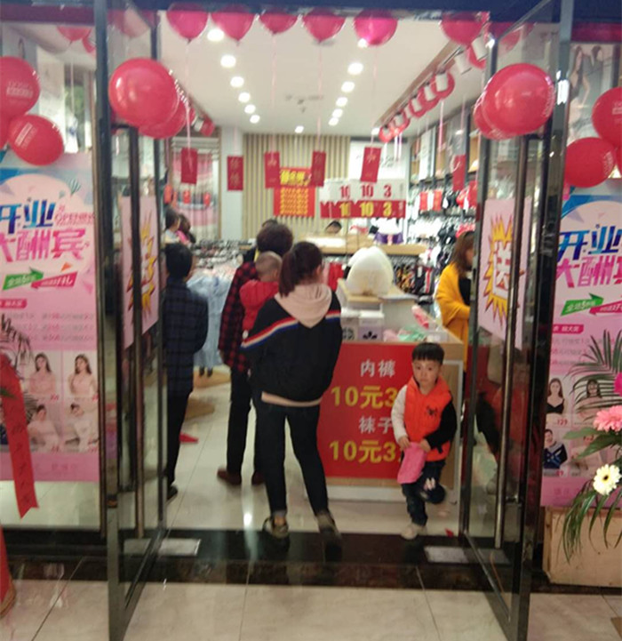 恩施巴东县是一个建设在半山腰上的县城,风景优美。店铺老板明哥和叶姐从事零售行业多年,经过其他加盟商了解到公司的都市恋人坊内衣品牌,2月底正式签约,经过20多天的筹备,于3月23日正式开业。开业当天外场布置大气,高高的礼品堆头、金灿灿的开业金蛋,高端大气的7代装修风格搭配喜庆的大红色气球拱门,店内彩带悬吊大量红包,激情动感的外场音乐一响起,整个商场异常轰动,热闹非凡,最后以14965的高业绩收官。下面我们一起来看一下当时火爆的活动现场照: