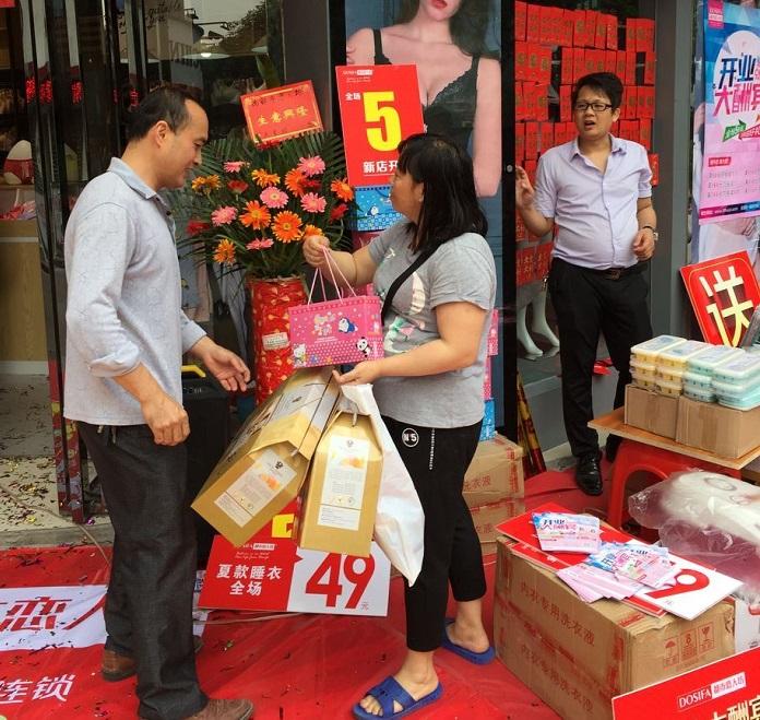 今天是周五,金城江的马路一大早就想起了都市恋人坊开业的喊麦声音,由于这里是严管街道,外场布置有些限制,但是也不影响顾客购买的欲望,附近是一所幼儿园,送完小孩的家长们,纷纷都往开业现场,30平方就店铺一下子就被包围的水泄不通。从早到晚,一天下来感觉就像是在打仗,一片热闹忙碌的样子。经过一天的奋战,最终业绩高达10187元收工。