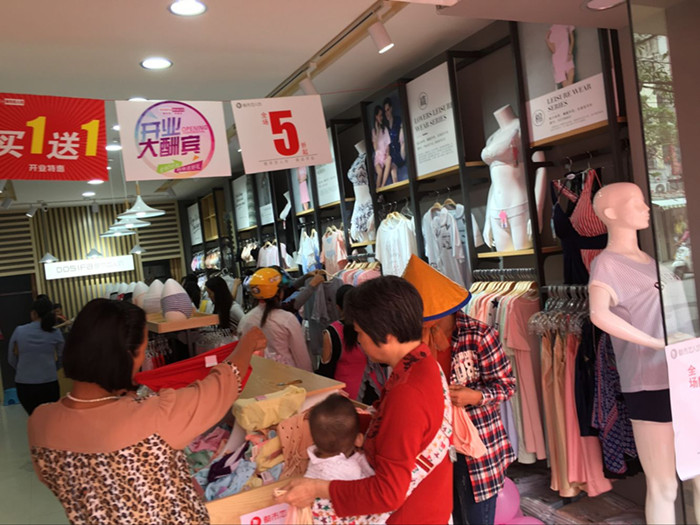 广西壮族自治区北海市是美丽的北部湾城市,在北海的山口镇,都市恋人坊已经是做了多年了。吴老板是经商多年的老板,几年前,吴老板,经过考察,发现镇上内衣店有市场,刚有此想法,公司业务员下区招商,找到了吴老板,吴老板在认真考察后,决定加盟都市恋人坊。在经营管理期间,吴老板综合了公司的五维服务和自己多年的经商理念,总结了最适合自己的经营模式,使店铺业绩持续增长!今年公司店铺形象统一升级,吴老板也跟随公司脚步,更新店铺新装修,下面我们来看看店铺装修后的热闹景象吧