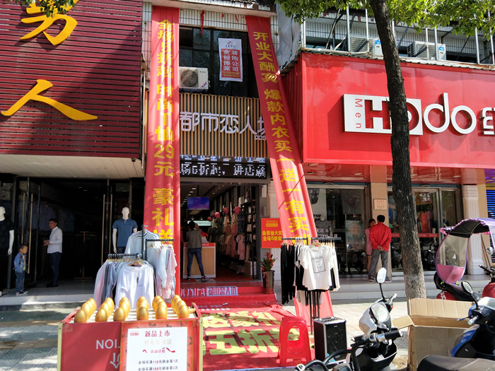 六安陈先生做建材生意的,他爱人家在当地开木工板的,他爱人之前是一位全职妈妈,对内衣行业并不熟悉,他们在15年加盟公司都市恋人坊品牌的。开业至今生意一直做的风风火火,两口子一直认定都市恋人坊最有前景,想着要再开一家内衣店,经过考察, 终于找到合适的店面,4月28日又一家新店开起来了。开业一整天人流络绎不绝,对面的、隔壁的内衣店干瞪眼。一起来看看我们陈先生2店的开业火爆现场:高大上的店面、霸气的外场。