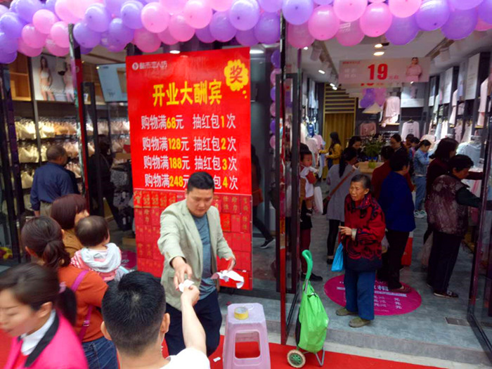 四月是一个春暖花开的季节,也是一个火爆的季节。我们王总2店换装修开业时间定于4月28日,虽说是在县城的一个镇上,但是开业当天也引起了不小的轰动。王总之前是做房地产生意的,从来没有接触过内衣行业,加盟都市恋人坊也纯属偶然。但是这次偶然的机会也让王总的生活有了不小的改变,这就是所谓的在对的时间遇上对的项目并作出了对的选择。王总是13年加盟的公司,也是一路见证着公司的成长,从开始的隔行如隔山到现在名副其实的甩手掌柜,王总的生意一直是做得顺丰顺水,3家店铺目前业绩都非常平稳,2店也是第三次换装修了,王总自己也说对公司现在的装修风格非常喜爱,公司一直在不断创新。话不多说,让我们一起来见证王总2店开业的火爆场景吧……
