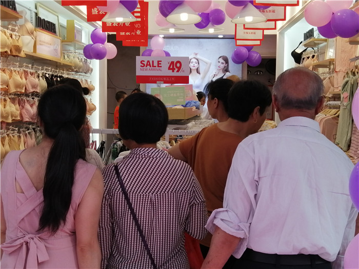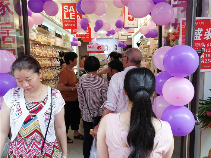 周姐在一次偶然的机会接触到了都市恋人坊!经过多番考察下定决心加盟都市恋人坊后,就迅速开出都市恋人坊,周姐原来是做散货内衣生意大的,因为发现现在散货生意不好做,现在都是品牌趋势,所以就寻求加盟品牌,经过多番的对比,周姐决定加盟对自己有优势的都市恋人坊,开业当天,新颖的款式,饱满的陈列,热闹的氛围,客流源源不断,让老板忙的找不到北,一天繁忙的销售下来,周姐都说累的快站不起来了,但是看着门庭若市的画面还是很开心的,下面让我们来看看我们当天火爆的活动现场吧: