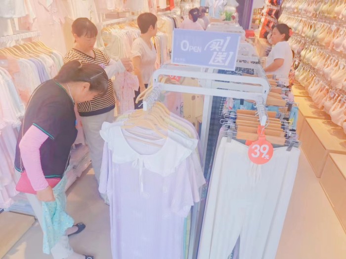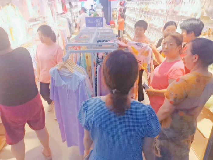 张总是16年加入我们公司的,是我们的老客户了,一开始也是考察了很多公司。了解到我们都市恋人坊全国加盟店有8000多家,专业的"五维督导服务"为店铺保驾护航,开店无忧。最终决定和我们品牌合作!张总说公司现在的产品质量越来越好了,新款上新的款式也很多,跟顾客推荐产品的时候都非常的有底气,款式多连带率也很好,做大单很容易。本次周末活动当天。虽然是炎炎夏日,但人气爆棚,业绩高达6065元。下面让我们一起看下活动现场吧!