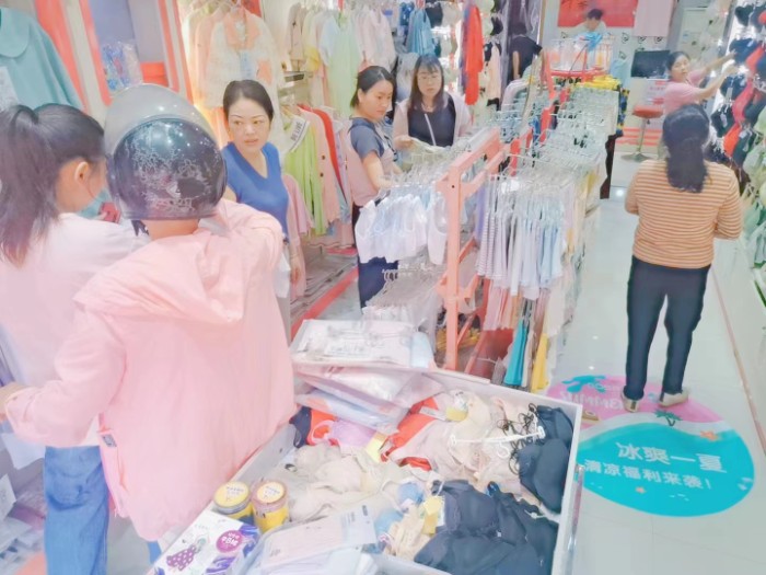 茆总是14年加入我们公司的,是我们的老客户了,一开始也是考察了很多公司。了解到我们都市恋人坊全国加盟店有8000多家,专业的"五维督导服务"为店铺保驾护航,开店无忧。最终决定和我们品牌合作!茆总说公司现在的产品质量越来越好了,新款上新的款式也很多,跟顾客推荐产品的时候都非常的有底气,款式多连带率也很好,做大单很容易。本次周末活动当天。虽然是炎炎夏日,但人气爆棚,业绩高达6360元。下面让我们一起看下活动现场吧!