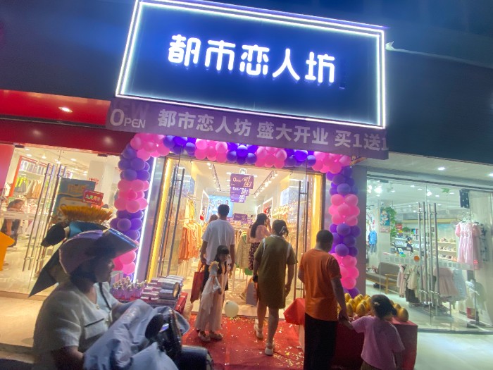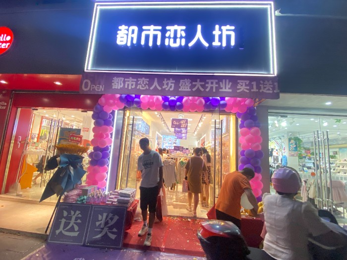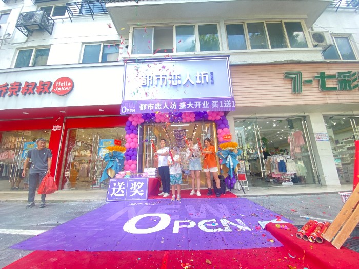 李姐之前是开都市丽人的,同一条街隔几家就是都市恋人坊,都市丽人开了七年左右,生意也是一年不如一年,相反隔壁的都市恋人坊却越做越大,不仅扩大了店面,还换了装修,李姐说每次走到都市恋人坊门口,都觉得她家的色系和陈列都很亮眼,经过了解,不仅款式好看,价格还很实惠,李姐最看重的就是公司的运营模式和五维督导服务,经过考虑最终决定转掉都市丽人,很快便找到了合适的店铺,终于在9月2号盛大开业,开业做的是满88元砸金蛋的活动,当天也是不负众望,人气爆棚,大单不断,最终以11656的高业绩完美收官,下面带大家看一下开业现场!