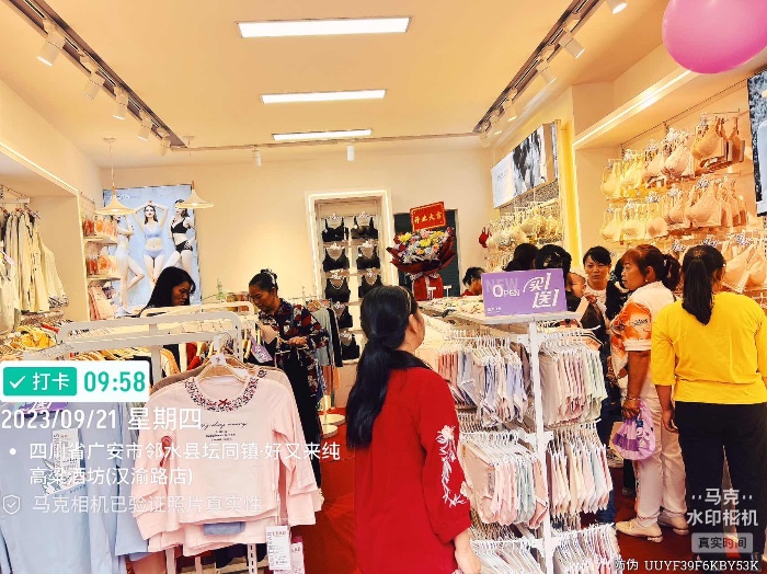 袁姐在我们四川广安一直做生意,以前也是做内衣行业的,去年疫情后通过我们的网络招商联系到我们,悉知我们优恋公司的五维督导服务,在与我们考察市场的同事确认店铺后果断签下了我们的最新政策,享受我们的最新优惠。 国有古话:雨带财,雨带财,开业当天即使下着滂沱大雨,依旧可以看到顾客手中大包大包的都市恋人坊购物袋以及洋溢在脸上满足的笑容,这 就是都市恋人坊的魅力!接下来我们看一下开业的火爆现场吧!