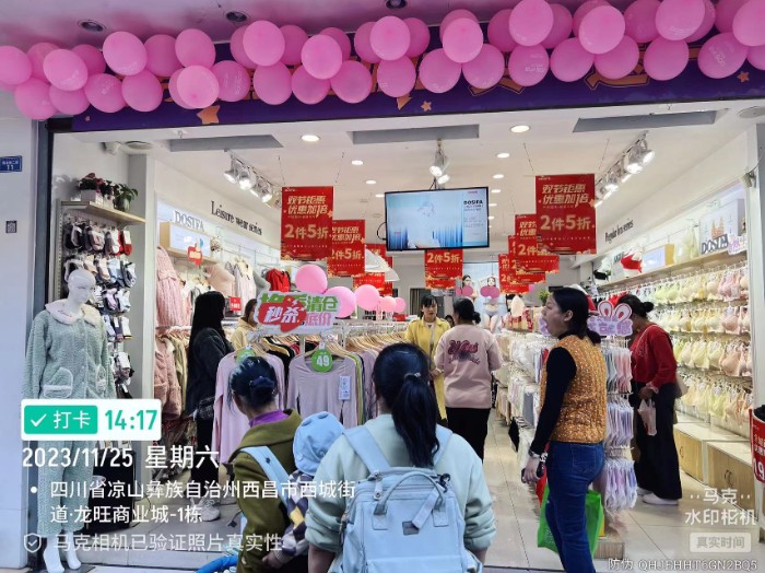 刘姐是在2013年和都市恋人坊展开的合作,在西昌商业步行街3家店全部开业,刘姐的目标就是要垄断当地内衣市场,满足更多女性的需求,帮助更多的女性做最美的自己,最好的自己! 有你的首次信任,相信我们就有长久的缘份。刘姐作为新时代的女性,凭其独到的商业眼光和敏锐嗅觉,果断签约都市恋人坊,把握商机,抓住机遇,顺流而上,搭上时代的快车,抢占时代的先机,实现自我梦想!此次彝族年活动我们做的是:全场买一送一,活动当天我们早早的起来把外场布置起来,随着督导激情的喊麦,西昌人民蜂蛹而上,经过大家的辛苦努力,最终以10015元完美收官!下面就让我们一起来看下当天火爆的活动现场吧!
