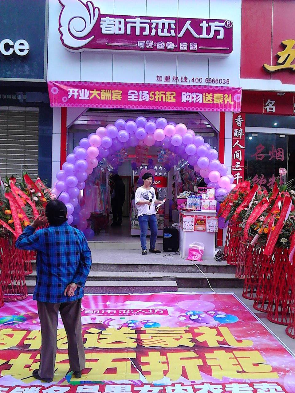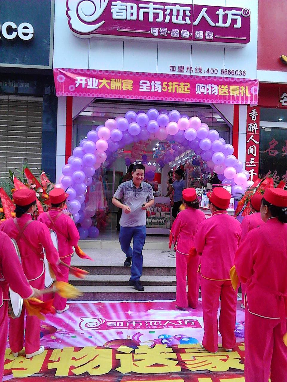 督导到达后,与加盟商进行了沟通,安排了第二天的工作,陈列,培训等等!让完全不了解内衣行业的余先生和家人了解了店面的管理,陈列,内衣的销售等等!13号开业当天,我们一大早开始布置外场,在西充大妈热情的舞蹈中,我们的开业活动拉开了帷幕!