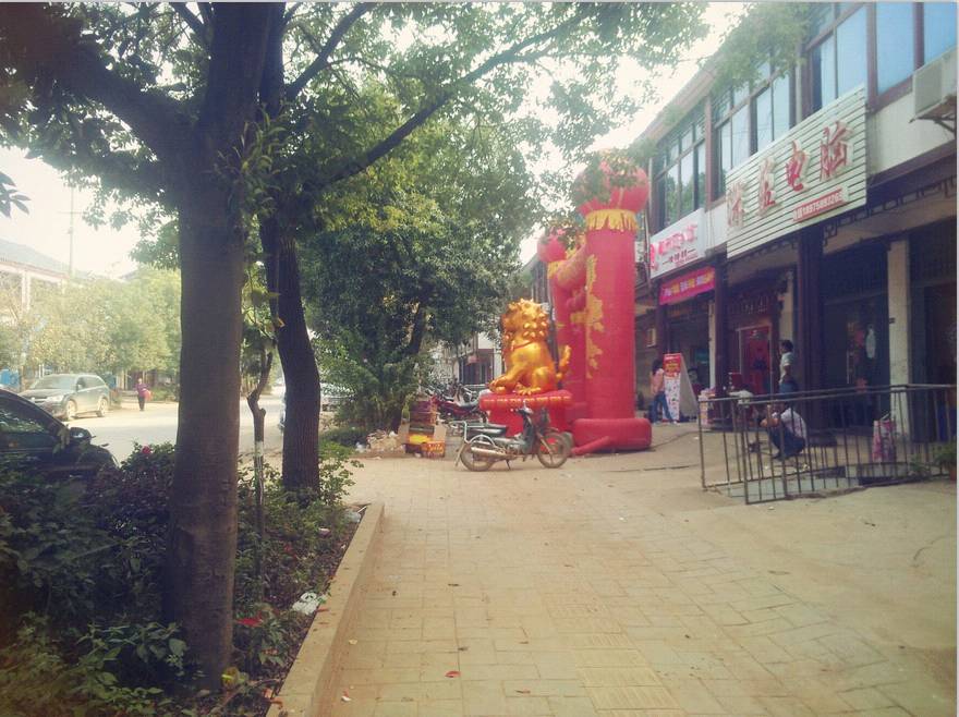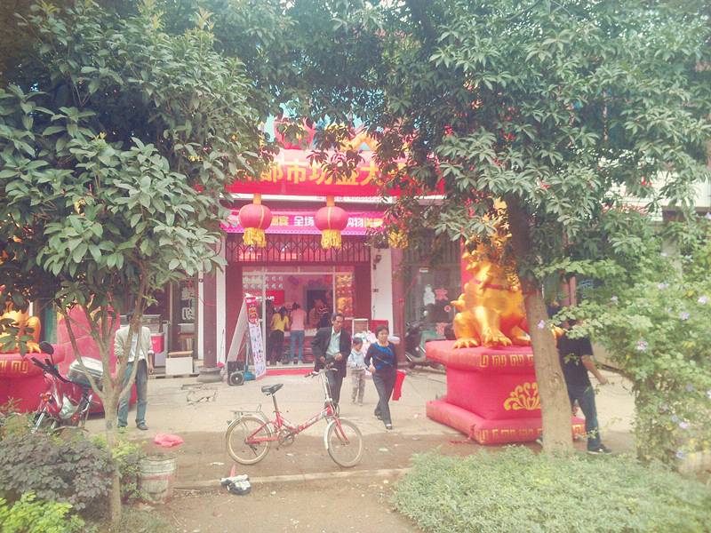 这个镇上人群比较分散,我们就把传单挨个店面都派发到位,很多店铺的老板也来捧场光顾。过往进来购买的顾客也是络绎不绝。