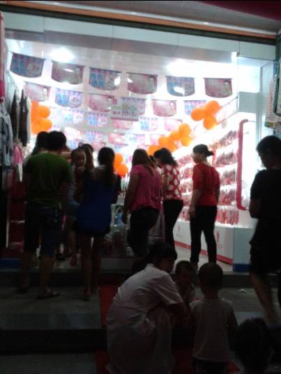 9月29号晚上我们下车立马就到赶到老板娘店里面,走到那时老板娘已经帮我们把货挂好了,接下来就是调板和布置了,忙到十点多才结束。