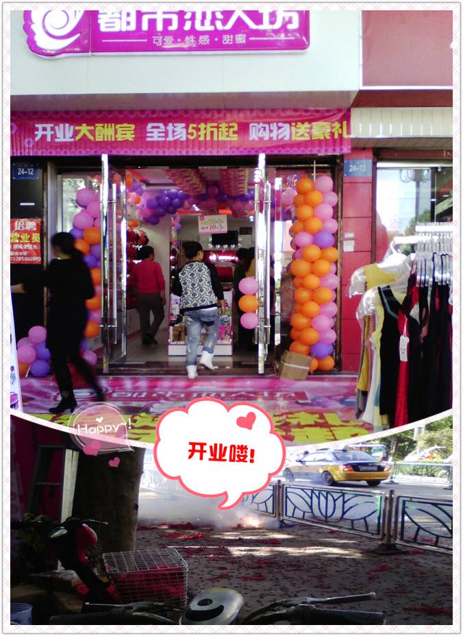 热烈庆祝都市恋人坊淮安金湖城中桥店盛大开业,金秋9月,收获的季节。随着鞭炮声的响起人群街道过往的车辆也慢慢停下来,纷纷走进都市恋人坊。