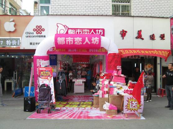 第二天我们早早的来到的店面准备工作,也许是昨天老天爷听到了我们的祈祷,开业当天居然没有下雨,我们开始忙碌起来,把地胶,拱门,礼品,音响全部放好后,我们便开始发传单,喊麦,可是早上的生意并不太理想,到12点才卖了2000不到,老板娘说能做到5000千就满足了,可是离我们的目标还有一倍的距离,我们很着急,老板说没事。