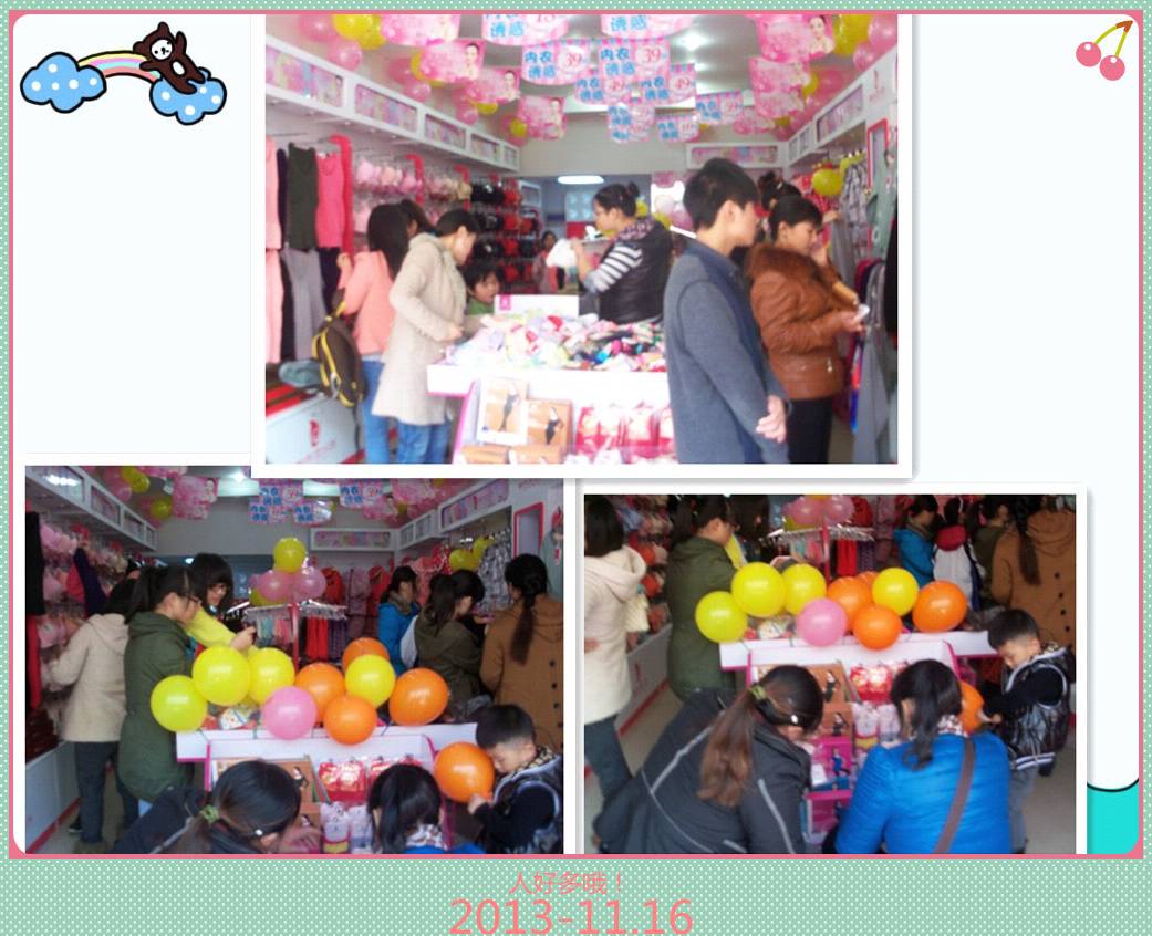 第二天一大早,每个人都精神抖擞的,加盟商笑呵呵的招呼,来捧场的朋友,看着八点钟花篮排满了整个店门口外围,,在空调外机上堆满了,恭喜发财的礼炮。忙个不停的招呼着陆陆续续进店购物的顾客,让他们新奇的来,满载而归的走,11月16中午11:18分,礼炮冲天响,人潮急汹涌,可把我们加盟商乐歪了嘴巴,忙啊,忙,开开心心的招呼着我们亲爱的恋人顾客们……